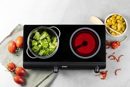 DOMO DO339KP Plaque de Cuisson Électrique Céramique – ECO – 2 Plaques Ø18 cm – Thermostat Réglable à 6 Positions