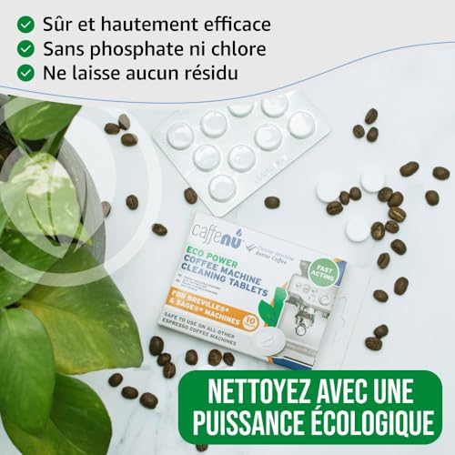AVANTAGES POUR VOTRE MACHINE – Ces tablettes de nettoyage pour machines à café servent à nettoyer plusieurs pièces de votre machine. Les tablettes nettoyantes Caffenu éliminent les résidus d’huile de café, les odeurs et les tannins amers qui s’accumulent dans les pots des unités de percolation et le porte-filtre. L’utilisation d’une tablette nettoyante pour machine expresso peut rallonger la durée de vie de votre machine à café et aider à retrouver le goût parfait du café !