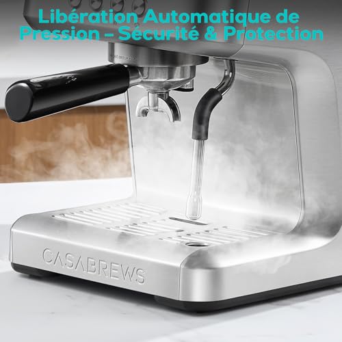 CASABREWS Machine à café Expresso avec Température réglable, 20Bars de Pression Machine Expresso avec Écran LCD, Cafetière Expresso Pour Café Moulu, Machine à Espresso et Cappuccino, Réservoir de 2.2L