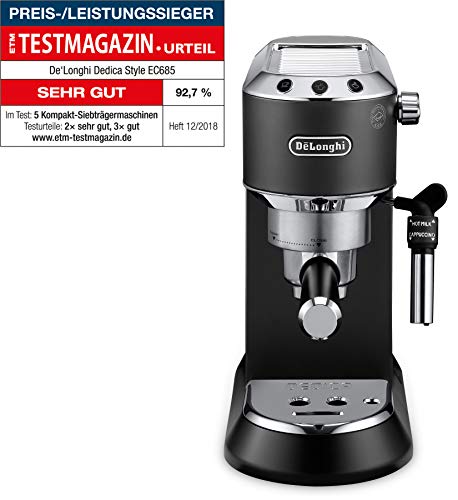 De’Longhi Dedica Style, Machine expresso pour préparer des boissons café et lactées, EC685BK, 1L Noir & DLSC058-Tasseur de café en acier inoxydable