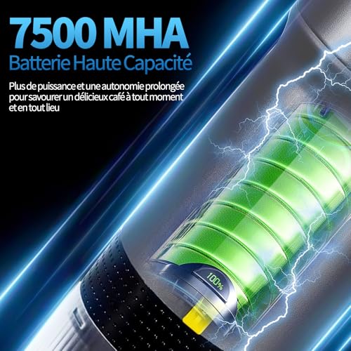 Un Cadeau Idéal pour les Amateurs de Café : La mini cafetiere electrique n’est pas seulement facile à utiliser, c’est aussi un cadeau bien pensé pour les amateurs de café. Grâce à la longue durée de vie de la batterie de 7500 mAh, vous et votre famille pouvez déguster un délicieux café à tout moment, n’importe où, ce qui en fait un cadeau idéal pour les anniversaires, les festivals et Noël