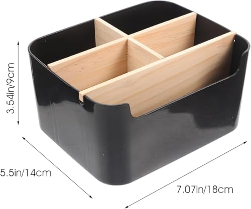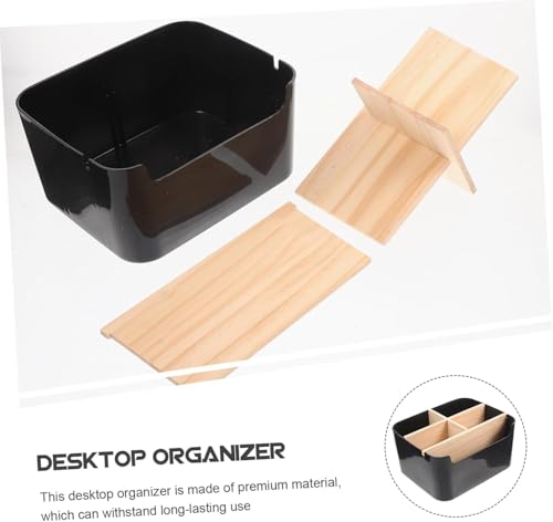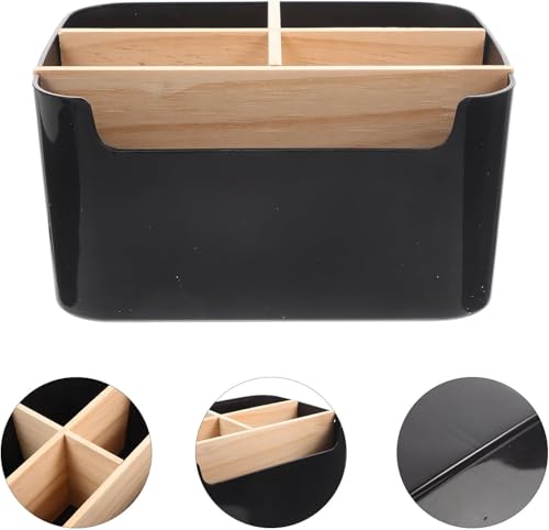 Organiseur de Bureau en Bambou – 5 Compartiments & Porte-Stylos, Boîte de Rangement Bureautique pour Stylos, Cosmétiques, Accessoires de Bureau (Noir), Idéal pour Bureau & Home Office