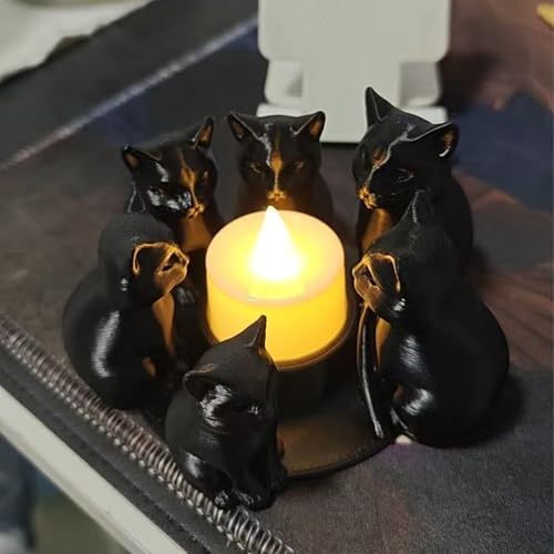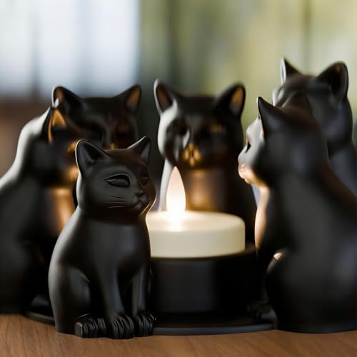 Unique Cat Design: Crafted with 3D printing technology, these candle holders feature an elegant black cat figurine design, adding a charming and stylish accent to tables, desks, windowsills, or shelves for Halloween, gothic, or everyday décor