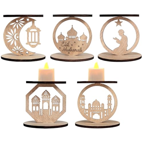 Holiday Wooden Candle Holders – Festival Decoration Set | 5 Pieces Stylish Middle East Candlestick Set, Desk And Home Display Stand For Living Room Bedroom Study Porch Nightstand Fireplace Mantle Gard