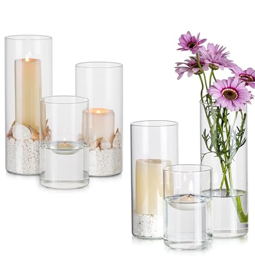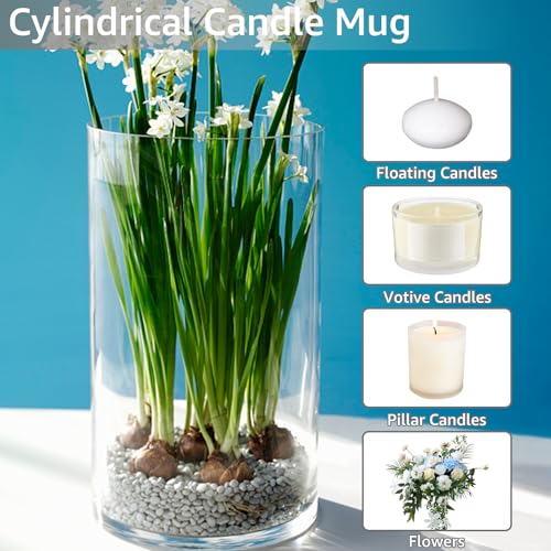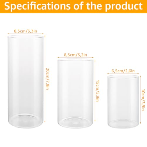 ✅【PLUSIEURS TAILLES】La hauteur du chandelier en verre cylindrique est de 10 cm, 15 cm, 20 cm et la largeur est la même que 6,5 cm. Les 3 différentes hauteurs des verres à bougies offrent plus de possibilités de placement, adaptées pour des colonnes de 5 cm, des bougies flottantes, des bougies de vœux.