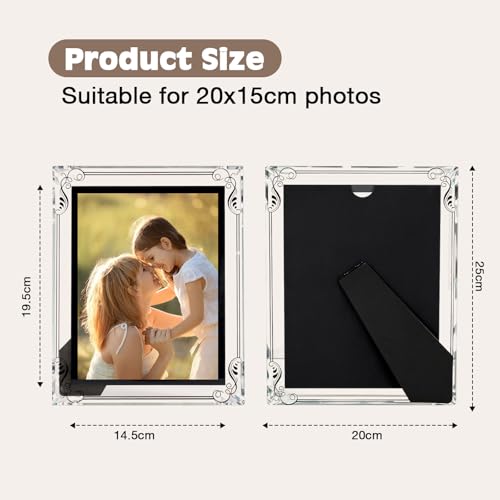 【Dimensions et Affichage】Cadre photo 15×20 avec dimensions extérieures 20x25cm et intérieures 14.5×19.5cm, parfait pour photos 15x20cm. Peut être placé horizontalement ou verticalement, uniquement à poser sur table (pas pour mur).
