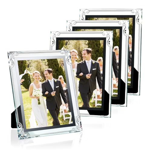Romon Cadre Photo 15x20cm Lot De 4, Cadre Transparent En Verre Argenté, Adapté Pour Photos 15x20cm, Uniquement À Poser Sur Table, Horizontal Ou Vertical pour Photos de Mariage Portrait Paysages