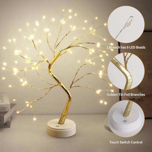 【Excellente Décoration】Cette lampe de sapin est faite d’ampoules LED de haute qualité, la lumière émise est douce et pas dure, ce qui peut apporter une expérience confortable pour vos yeux. La lumière blanche chaude se répand uniformément dans la pièce, créant facilement une atmosphère romantique, confortable et agréable. Les branches d’arbre dorées ont une forme réaliste et ressemblent à une croissance naturelle. Elles peuvent ajouter des couleurs différentes et harmonieuses à votre intérieur.