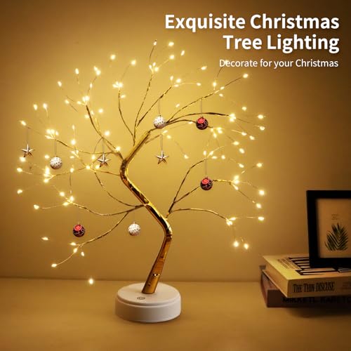 CNMTCCO LED arbre de Noël, 108 LED, branche réglable, alimenté USB/batterie, lumière blanche chaude, décoration intérieure salon chambre