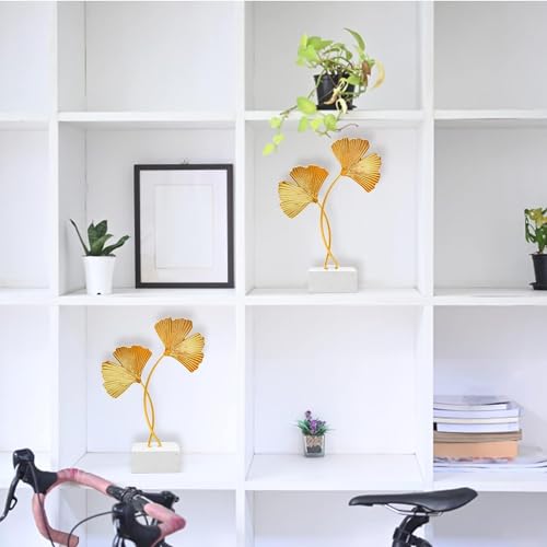 Décoration Salon, Petit Statue Décoration Intérieur Maison, Petit Ginkgo Biloba Sculpture Feuille, Ornement pour Salon, Bureau,Déco Maison Moderne (28 x 14 cm)