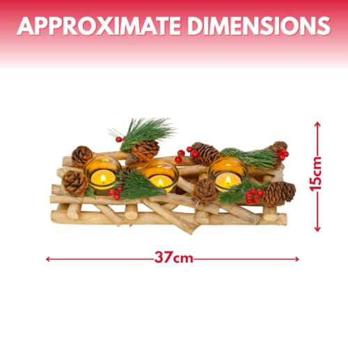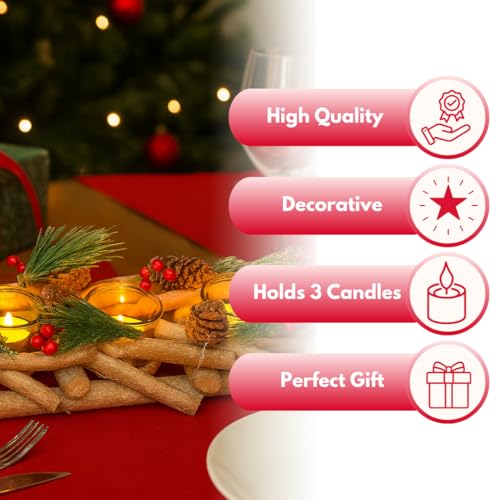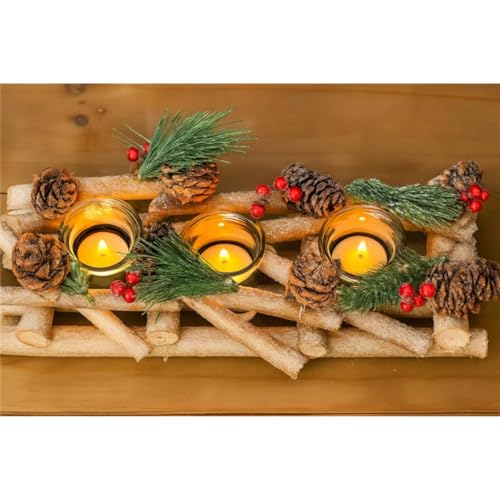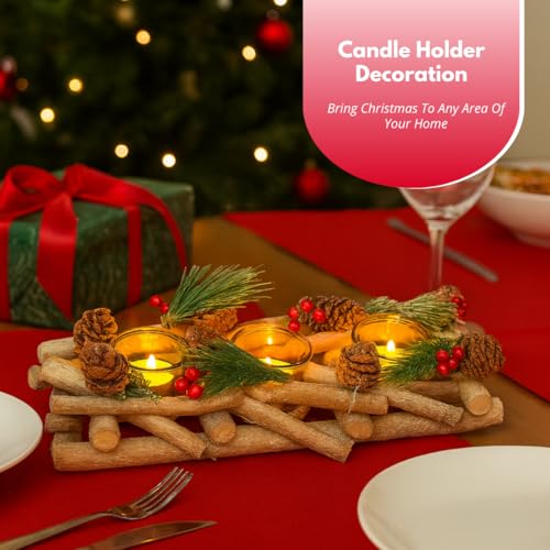 Décorations de Noël pommes de pin et baies, bougeoir, décorations d’intérieur pour la maison, centre de table de Noël, ensemble de dîner, lumière de cuisine, décorations de table