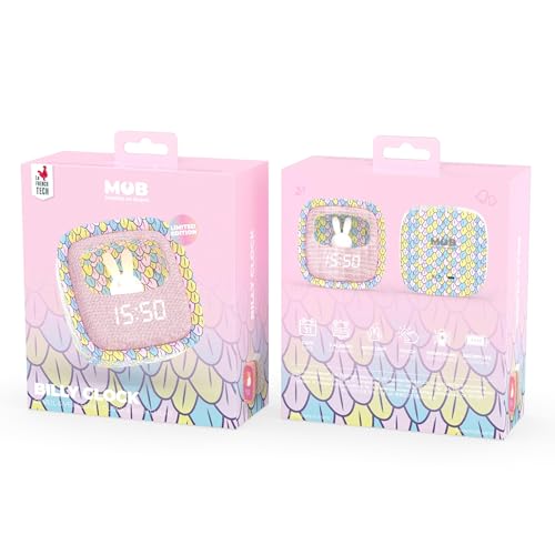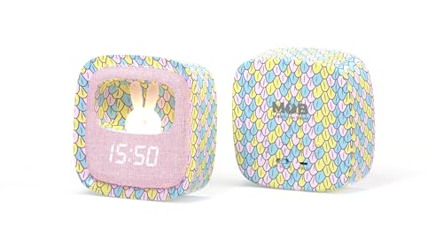 MOB – MOBILITY ON BOARD Réveil et Veilleuse pour Enfant Billy Clock Sirène Arc-en-Ciel – Motif Lapin – Cadre Plastique Soft-Touch – Programmation de la Date, de l’Heure et de 3 Alarmes