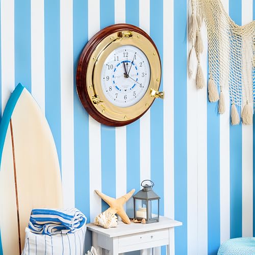 Nagina International Horloge de marée Nautique sur Socle en Bois Premium – hublot en Laiton Poli à Suspendre à décor (10 Pouces)