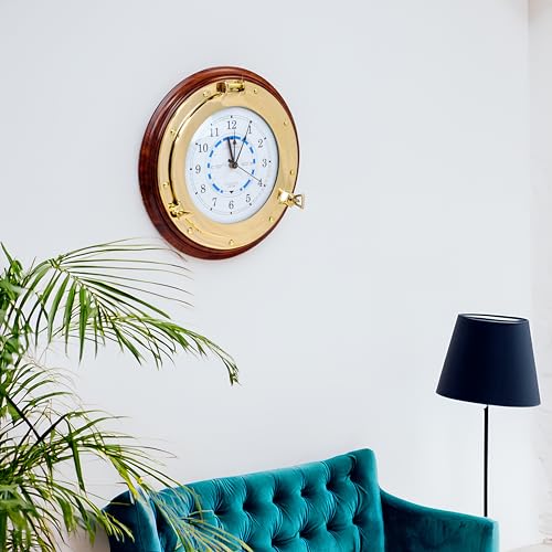 Code UGS – B01KY9IVZ2 | Matériau : laiton massif + verre + plastique de qualité supérieure | Finition chamois polie en bois franc massif sur une base en bois | Horloge de marée de hublot poli en laiton brillant de qualité supérieure | Takane (MADE IN USA) Mécanisme de l’heure et de la marée.