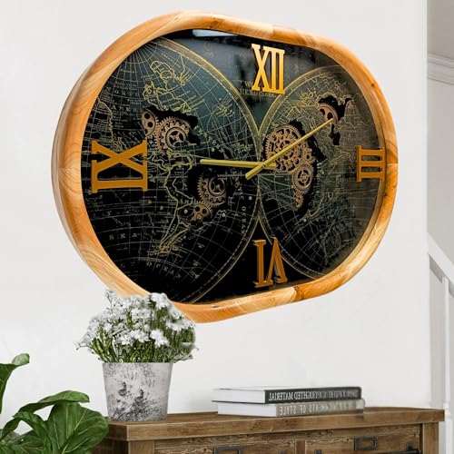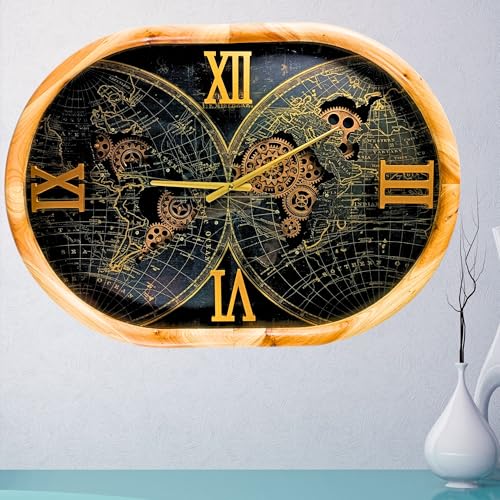 The Gears Clock Horloge ovale de 68,6 cm avec engrenages mobiles Portugal Line est une œuvre d’art sur votre mur. Équipement mobile : le mouvement de l’engrenage fait de l’horloge un élément vivant dans l’environnement dans lequel elle est placée. Superbe décoration dans n’importe quelle pièce. Qualité : fabriqué à partir de matériaux de haute qualité pour garantir la durabilité de l’horloge. Parfaite pour toutes les pièces : l’horloge industrielle vintage à engrenages est l’horloge parfaite pour habiller un mur dans votre salon, salle à manger, chambre, salle de bain, salle familiale, salon, bureau ainsi que commercial, simplement n’importe où. Piles : nécessite trois piles AA (non fournies). Prêt à accrocher | Facile à accrocher sur n’importe quel mur avec le crochet pré-installé situé à l’arrière de l’horloge. Matériau : le cadre de l’horloge est fabriqué en 40 % bois, 55 % métal et 5 % plastique. Dimensions : l’horloge est ovale et mesure 70 cm sur le côté long et 50,8 cm sur le côté court Produit de qualité supérieure. Couvercle en verre (il s’agit d’une grande horloge, veuillez mesurer soigneusement l’espace prévu avant l’achat)