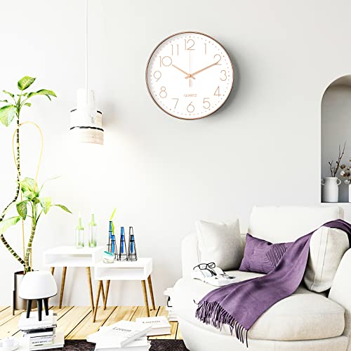 Uootach Horloge Murale, 30CM (12 Pouces) Moderne Horloge Murale silencieuse (Blanc Caractère Or)