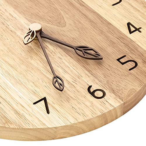 VIVILINEN Horloge Murale Bois Naturel Massif Horloge Bois 12 Pouces Mouvement Silencieux sans Bruit Tic-Tac Pendule Murale Style Moderne Simple Salon Chambre Cuisine