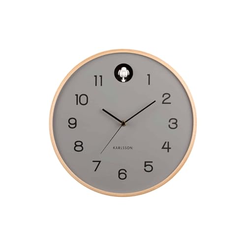 Wall Clock Natural Cuckoo Birch Wood Mouse Grey