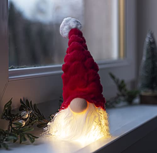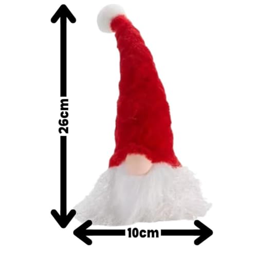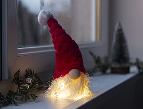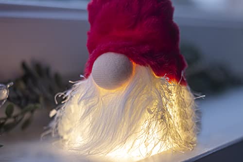 Décoration de Noël rouge gonk mesurant environ 26 cm de haut ; elle est idéale pour offrir ou décorer la maison et peut également être posée. Il est adapté pour une utilisation en intérieur et minuterie automatique 4 heures allumées/20 heures éteinte et 3 x LR44 (inclus).