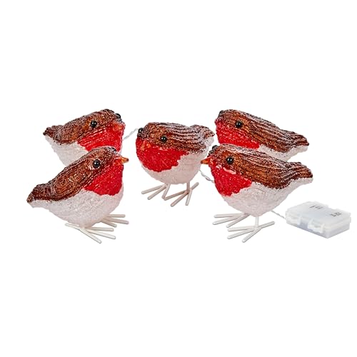 Marco Paul Lot de 5 décorations de Noël à DEL en forme de rouge-gorges à piles avec minuterie automatique pour intérieur et extérieur