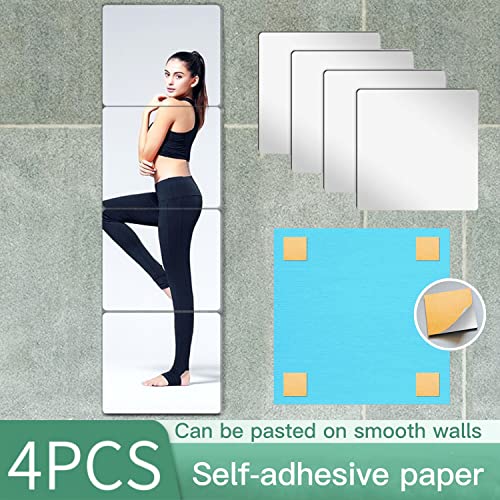 4 Pièces Miroir Mural Autocollant, Autocollant Mural Décorative Auto Adhésifs, Miroir Acrylique Antidéflagrant Carrés Flexible pour Salle de Bain Salon Chambre (4 Pièce)