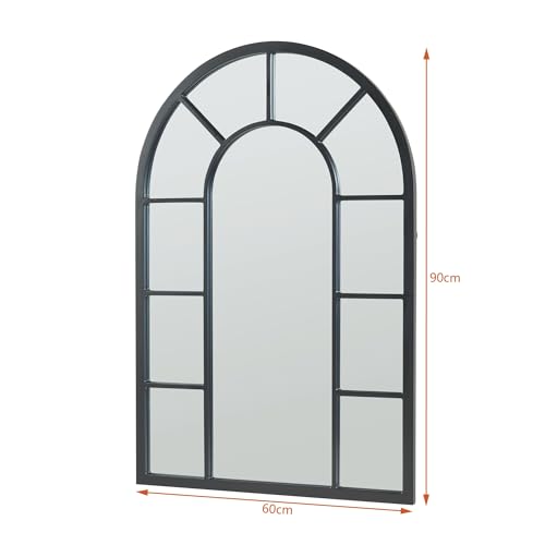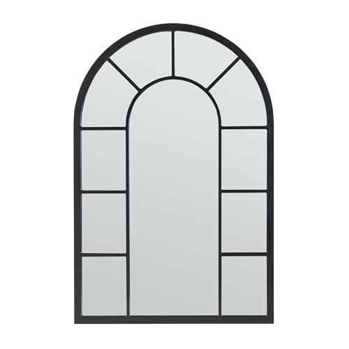 [en.casa] Miroir Mural en Forme de Fenêtre Miroir Arche Style Intemporel pour Salon Chambre Bureau Salle de Bain Entrée MDF 90 x 60 cm Noir