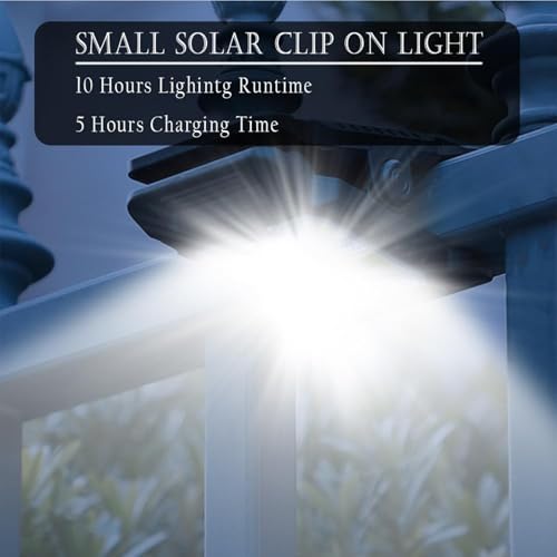 Attachable Solar Lights – LED Wide Angle Waterproof Lamp, 6 Inch Gutter Fixture with Clamp, Alloy Bracket Pair with Grip, Outdoor Supply Style, Lighting Aid for Yard, Garden, Porch, Pathway