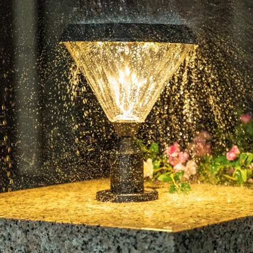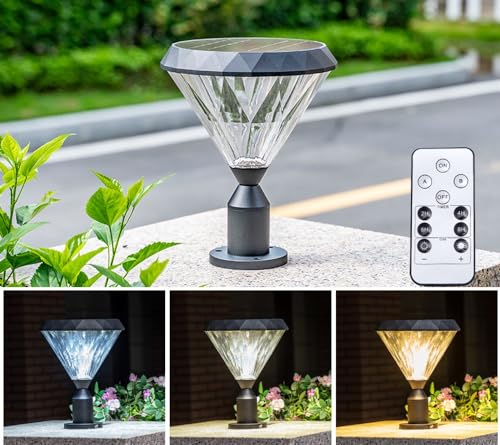 Black Solar Post Outdoor Light with Pier Mount Street Lighting Remote Control Fence Lamp for Garden Balcony Entryway