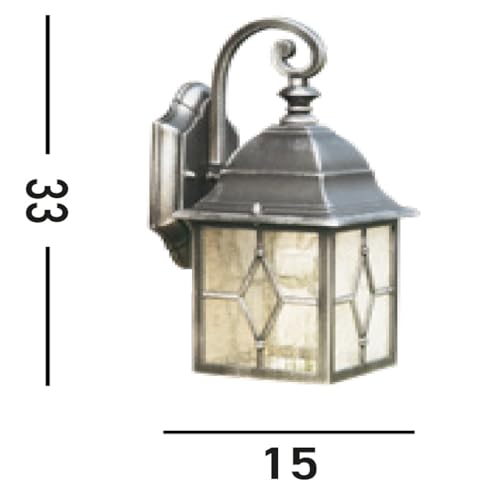 Applique murale murale traditionnelle en aluminium moulé à l’extérieur (finition noire et argent avec panneaux en verre transparent). IP23 et peut être équipé de lampes à économie d’énergie. Cette applique murale d’extérieur nécessite 1 ampoule E27 de 60 W (bouchon à vis). Faites cette faible énergie, pour voir les pièces de rechange et les accessoires pour ampoule à économie d’énergie.