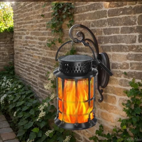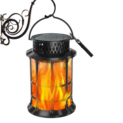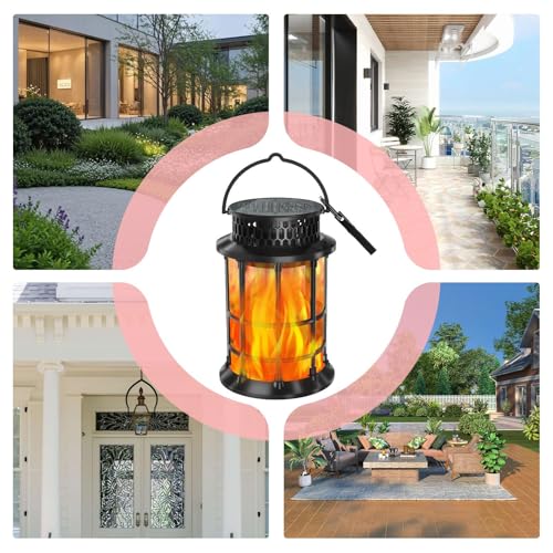 Illuminate your outdoor space with this decorative solar flame lantern, designed to enhance garden ambiance while providing energy-efficient lighting for patios, pathways, and backyards; its unique flame effect serves as a landscaping highlight, adding charm to porches, trees, and other areas, while doubling as reliable security lighting for nighttime safety and visibility.