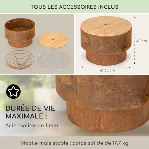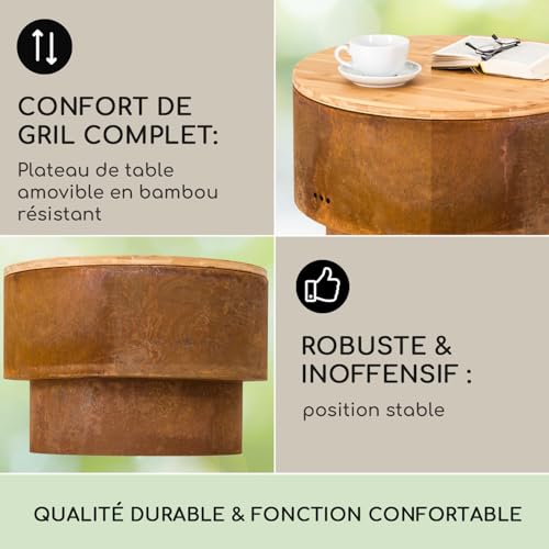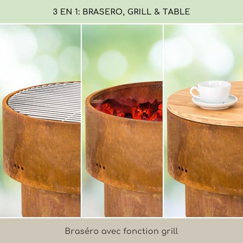 UN GRILL PRATIQUE ET POLYVALENT : Nos braseros pour jardin sont conçus pour être utilisés en sécurité et équipés d’un bac à cendres pour un nettoyage facile. Utilisez-le comme gril ou avec le couvercle en bambou inclus pour en faire une table basse.