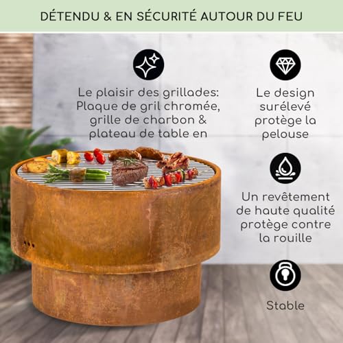 PROFITEZ D’UN MOMENT DE DÉTENTE AUTOUR DU FEU : Avec ce brasero exterieur 3 en 1 de Blumfeldt. Rassemblez vos amis et votre famille autour de ce brasero barbecue pour cuisiner des grillades au feu de bois, un moment inoubliable et convivial.