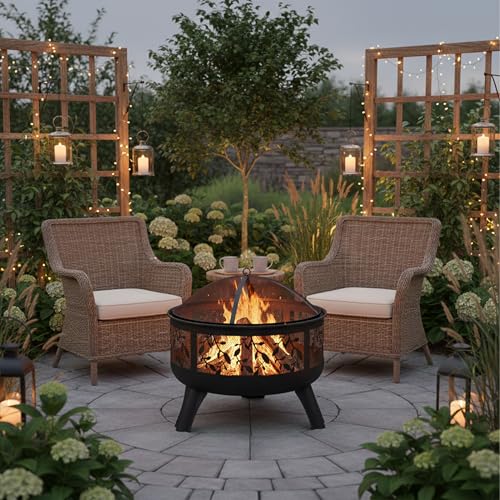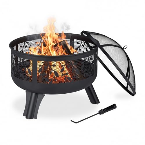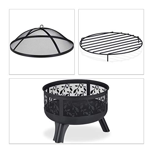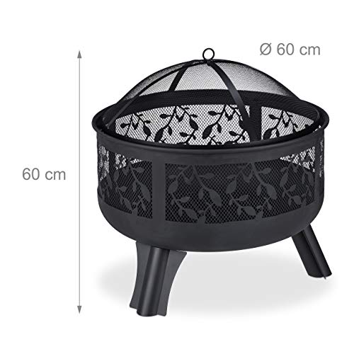 Relaxdays Brasero avec Protection étincelles, Jardin et terrasse, avec tisonnier, Foyer extérieur, HxD 60 x 60 cm, Noir