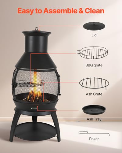 VEVOR Cheminée Extérieur, 559 mm, Poêle à Bois Sphérique en Fer Robuste pour Barbecue et Réchauffer, avec Grille, Couvercle de Cheminée Antirouille, pour Patio, Jardin, Arrière-Cour, en Plein Air