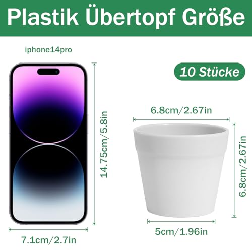 Liste de colisage : petit pot de fleurs blanc Dimensions : 5 x 6 x 7 cm (largeur inférieure x hauteur x largeur supérieure), contient 10 pots. Idéal pour les semis, la collecte de plantes grasses et de petites plantes