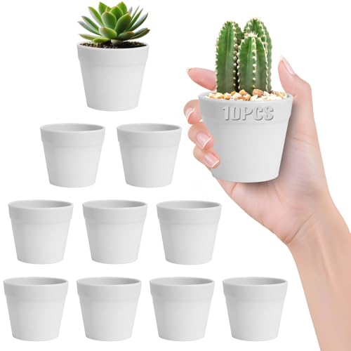 Lot de 10 Mini Pots de Fleurs en Simulation Plastique céramique Blanche 6 x 7 cm – pour Plantes succulentes et succulentes – pour Plantes d’intérieur et d’extérieur