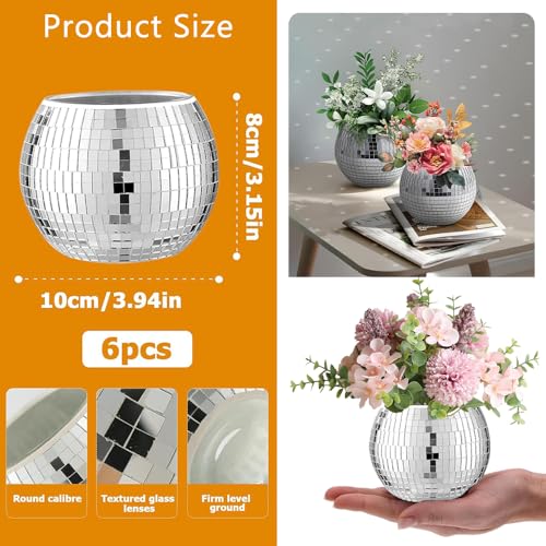 Pot de fleurs boule à facettes unique : Cet ensemble de 6 pots de fleurs boule à facettes, chacun de 8 cm par 10 cm, est compact mais visuellement impressionnant, ce qui en fait le complément parfait à votre table ou étagère comme une pièce remarquable du décor de la chambre disco.