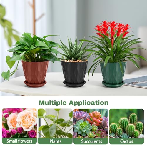 Lot de 6 Pots de Plantes 12cm, Pots pour Plantes avec Trous de Drainage et Soucoupe pour Intérieur et Jardins de Balcon (Multicolore)