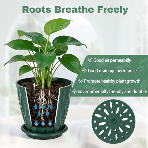 【Excellent Système de Drainage】Le fond du pot est équipé de plusieurs trous de drainage, évitant efficacement l’excès d’eau et la pourriture des racines, tout en favorisant une bonne circulation de l’air. Le set comprend des pots et leurs soucoupes assorties — solides, esthétiques et fonctionnels — un choix idéal pour l’entretien de vos plantes d’intérieur
