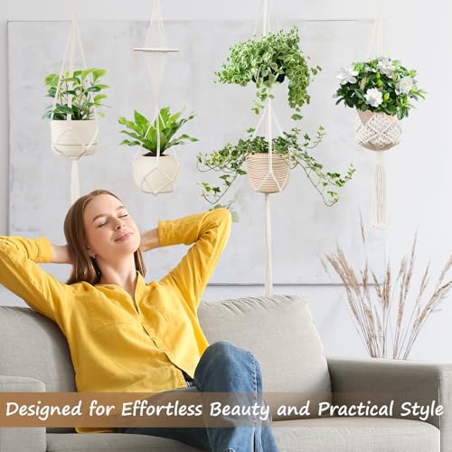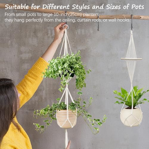 【Capacité de Charge élevée】Chaque panier suspendu supporte jusqu’à 5,5 kg (12lb). La corde en coton robuste et les crochets métalliques garantissent sécurité et protection contre les risques de casse?! Un cadeau pratique et esthétique pour les amoureux des plantes.