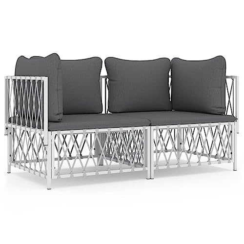 Ensemble de meubles de jardin 2 pièces avec coussins en acier blanc, ensemble de meubles de jardin, table et chaises décoration pour terrasse, patio, balcon