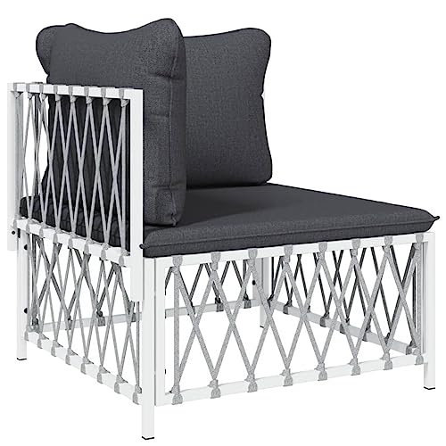 Profitez d’une tasse de café ou de thé dans l’espace extérieur de la maison avec ce salon de jardin confortable. Matériau durable : le tissu tissé est tout textile composé de tissu. Il s’agit d’un type de tissu très utile que nous utilisons très souvent au quotidien en raison de sa durabilité et de sa polyvalence. Structure robuste : la structure en acier avec revêtement en poudre rend l’ensemble de canapés robuste et stable pour une utilisation quotidienne en plein air. Assise confortable : le dossier apporte un plus de confort au canapé d’extérieur. En outre, les coussins épais et rembourrés offrent un confort d’assise. Design modulaire : l’ensemble de canapés est flexible et facile à déplacer, de sorte que vous pouvez le combiner avec d’autres segments modulaires de la boutique en ligne pour créer vos propres configurations personnelles de meubles de jardin. Remarque : pour vous assurer que vos meubles d’extérieur restent beaux, nous vous recommandons de les protéger avec une housse imperméable. Canapé d’angle de jardin : couleur : blanc. Matériau : tissu tissé, acier revêtu par pulvérisation, textilène. Dimensions : 72 x 72 x 66 cm (largeur x profondeur x hauteur). Dimensions de l’assise : 70 x 70 cm (largeur x profondeur). Capacité de charge (par siège) : 110 kg. Coussin : Couleur : gris foncé. Matériau : tissu (100 % polyester). Matériau du rembourrage du coussin de siège : mousse. Matériau du rembourrage du coussin de dossier : coton PPDimensions du coussin d’assise : 70 x 70 x 5 cm (L x l x H). Dimensions du coussin de dossier (grand) : 69 x 41 cm (L x l). Dimensions du coussin de dossier (L x l x P). Taille S : 54 cm. 41 cm (longueur x largeur). Montage nécessaire : oui. La livraison comprend : 2 canapés d’angle de jardin, 2 coussins de siège, 2 coussins de dossier (grand), 2 coussins de dossier (petit).