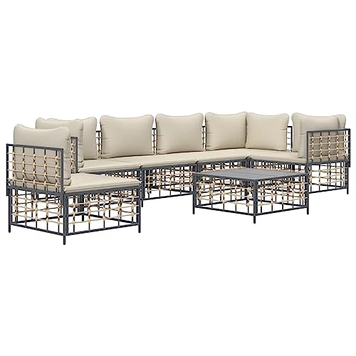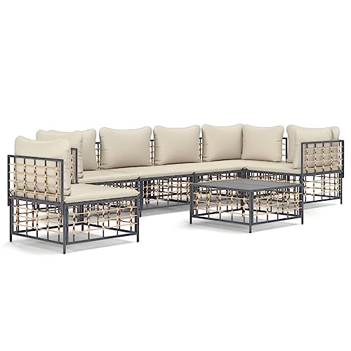 Table Et Chaise en Rotin,Salon De Jardin Textilene,Patio Furniture,Salon de Jardin 7 pcs avec Coussins Anthracite résine tressée
