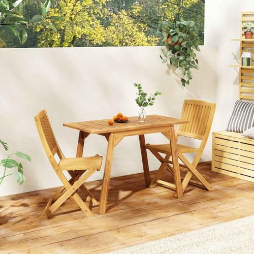 vidaXL Ensemble de Balcon 3 pcs, Table et Chaises Pliables de Salle à Manger, Meubles de Patio Extérieur, Moderne, Bois d’Acacia Solide