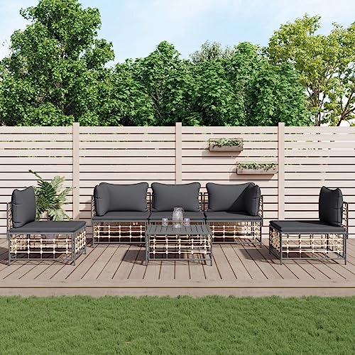 ZEYUAN Patio Furniture,Table Et Chaise en Rotin,Salon De Jardin Textilene,Salon de Jardin 6 pcs avec Coussins Anthracite résine tressée