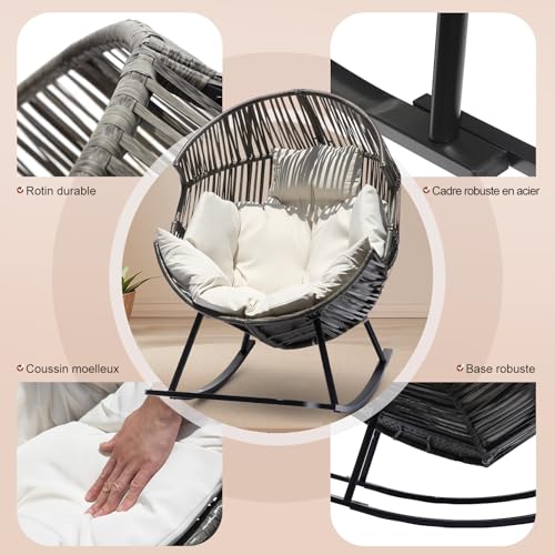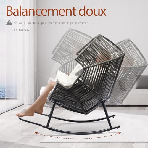 Fauteuil à Bascule pour l’extérieur et l’intérieur,Rocking Chair,Fauteuil Ouf Surdimensionné en Rotin PE Avec Coussin épais,Fauteuil Lounge Confortable,pour Salon,Terrasse,Balcon, Porche,Jardin