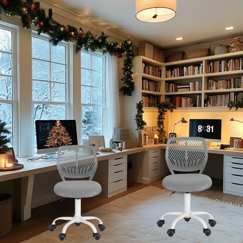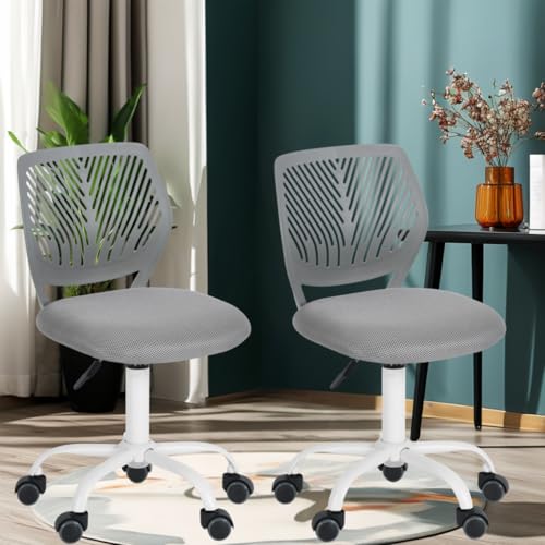 FurnitureR FR 2PCS Carnation Grey Lot de 2 Bureau ergonomiques en Tissu sans accoudoirs, Chaise pivotante à Hauteur réglable, Turquoise, I, Métal Maillage, Gris-O, E-2PCS Chairs