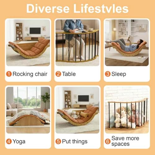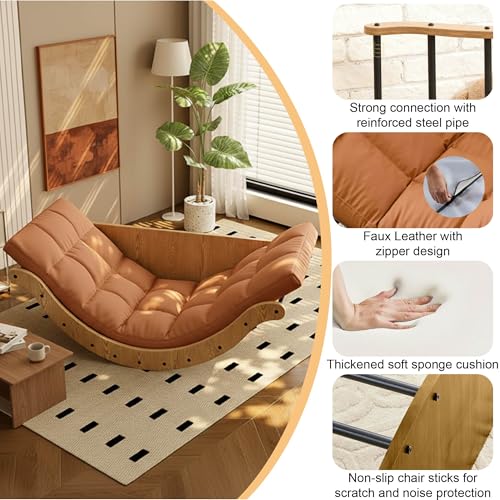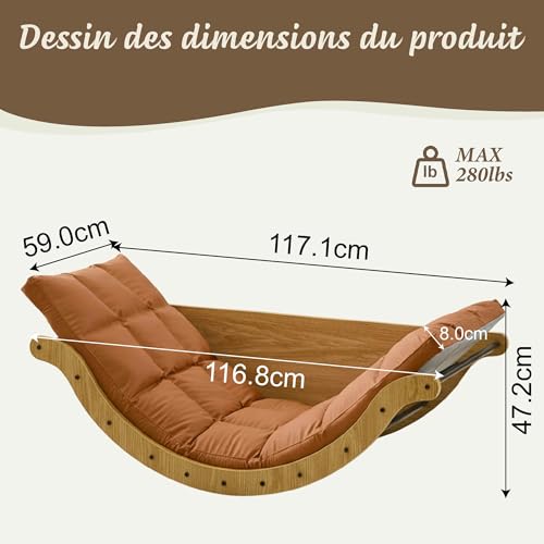 Design Élégant et Moderne : Associant un cadre en bois de haute qualité à un matelas orange doux et épais, ce fauteuil a bascule apporte une touche de style contemporain et épurée à votre intérieur (salon, chambre, etc.)