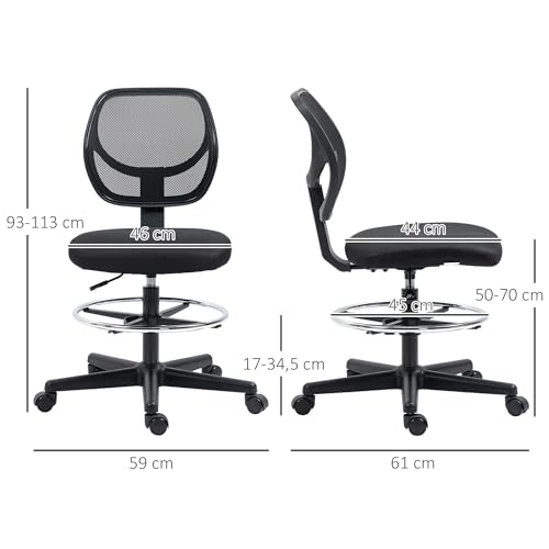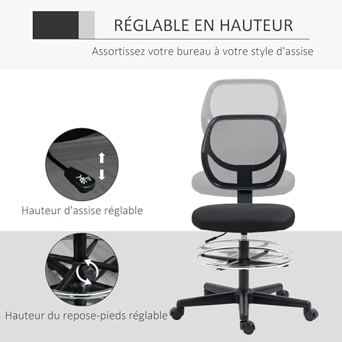 Vinsetto Chaise de Bureau Assise Haute Fauteuil de Bureau en Maille Assise Ergonomique Hauteur réglable 50-70 cm avec Repose-Pied pivotant 360° Noir