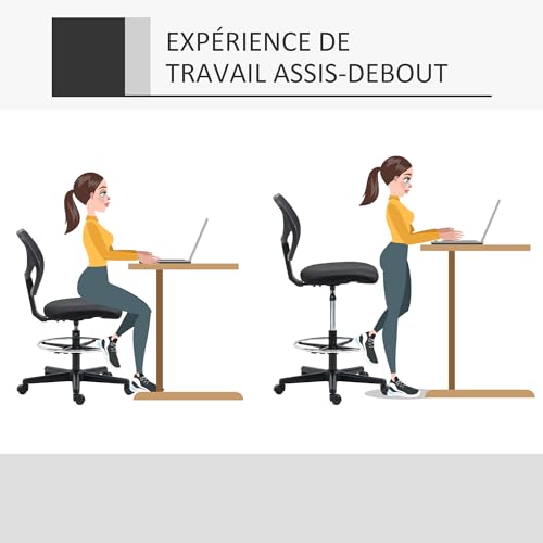 EXCELLENTE MOBILITÉ : Siège assis debout pivotant à 360 ° et 5 roulettes multidirectionnelles en nylon pour une mobilité accrue au bureau